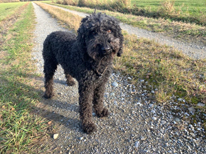unsere reine Labradoodlehündin (Vater und Mutter bereits Labradoodles ) ist 2011 geboren und der Sonnenschein und die Vermittlerin innerhalb des Rudels. Sie kann keinen Streit vertragen stellt sich immer dazwischen und sorgt für Ausgeglichenheit. Sie versteht sich mit allen Tieren und Menschen und hat ein absolutes Vertrauen in das Gute. Als Wasserratte springt sie vom Steg und schwimmt für ihr Leben gern oder rennt neben dem Fahrrad her. Auf der Suche nach einem Hund, der unser Familienleben bereichert, mich aber auch bei der Arbeit begleiten kann, bin ich auf sie getroffen.